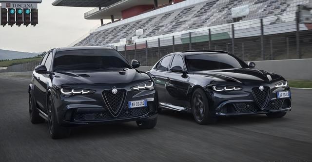 图:此外,在2025年12月爱快还推出了Giulia和Stelvio Quadrifoglio Collezione特别版,车漆采用Rosso Etna,并带有外露式碳纤维包围和深色铝合金轮圈,内饰还有碳背的Sparco座椅和大量皮革和Alcantara材质混搭的包覆,两个车型限量生产63台。